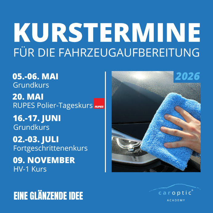Die caroptic academy startet mit vollem Elan ins Jahr 2026! Die Termine für Februar und März sind schon ausgebucht. Es gilt keine Zeit zu verlieren, deswegen sicher dir schnell deinen Platz im nächsten Kurs und werde zum Aufbereitungs-Profi!